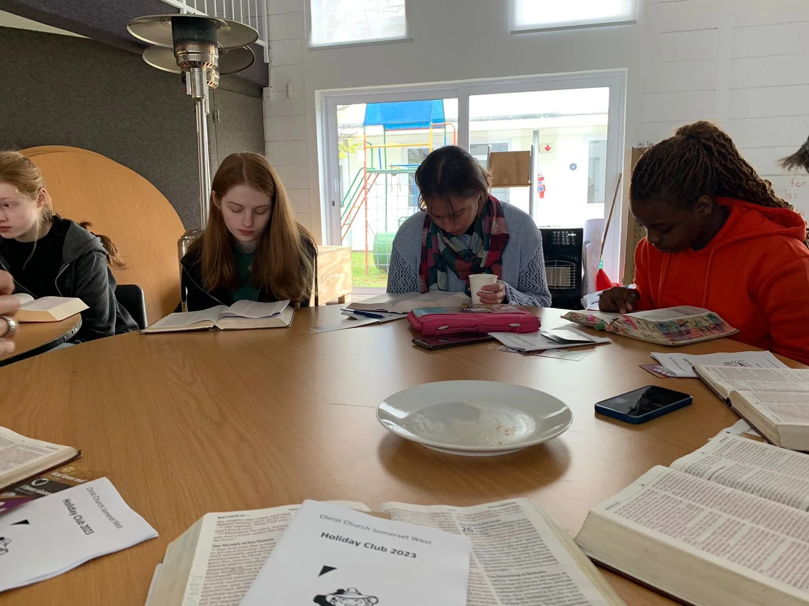 This past Sunday, a group of teenagers who will be serving as Holiday Club leaders met for training after the morning services. They enjoyed lunch, then they prayed and read the Bible together. They then spent a few hours working through the Holiday Club programme, as part of their preparation.